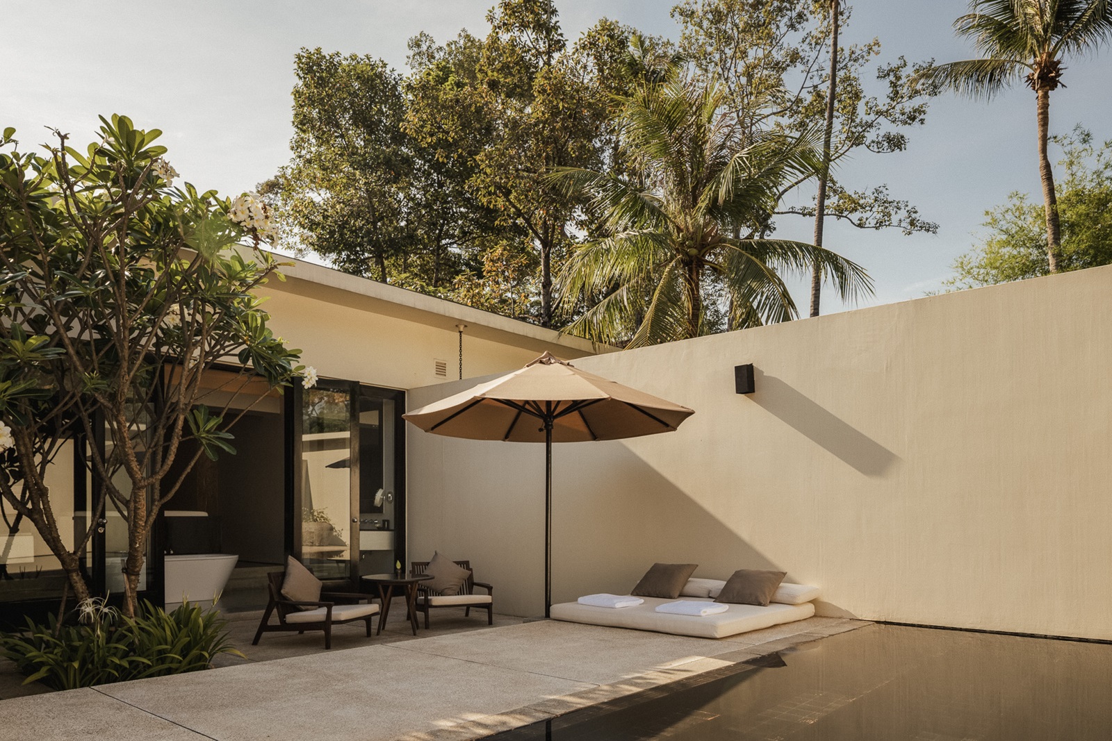 pool suites (141 m²) met ruime privé patio met dagbed, eetgedeelte en privé zwembad (25 m²)