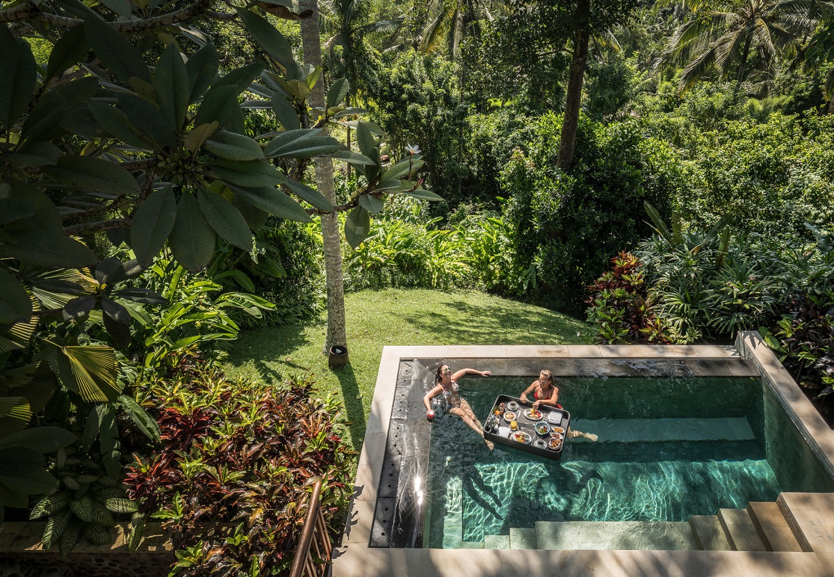 verschillende villa's mogelijk met plunge pool of privézwembad: 1 slpkmr villa (350 m²) met tuinzicht, River Front villa (340 m²) met rivier- en tuinzicht, Sayan Villa (480 m²) met zicht op de Sayan vallei, 2 slpkmr villa (760 m²) met 2 badkamers en tuinzicht, Rivier View 2 slpkmr villa (1320 m²) met zicht op de rivier en de rijstvelden en Royal Villa (2125 m²) met 3 slaapkamers en 3 badkamers