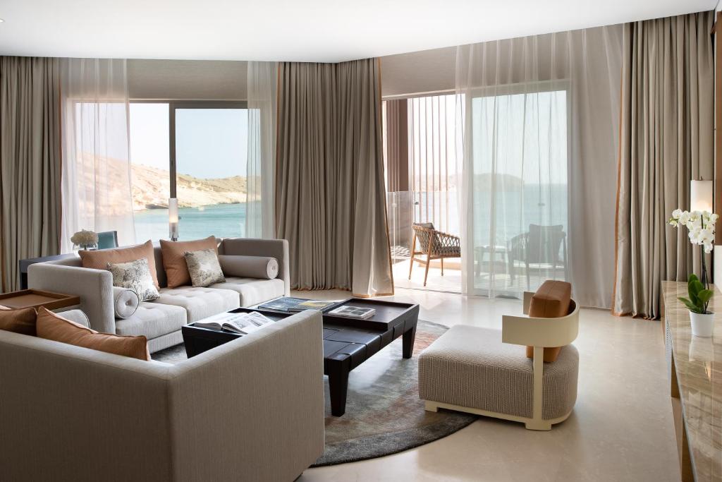One Bedroom Panoramic suites (98-104 m²) met ruime living, aparte slaapkamer, balkon met zeezicht en toegang tot de Premium Club Lounge