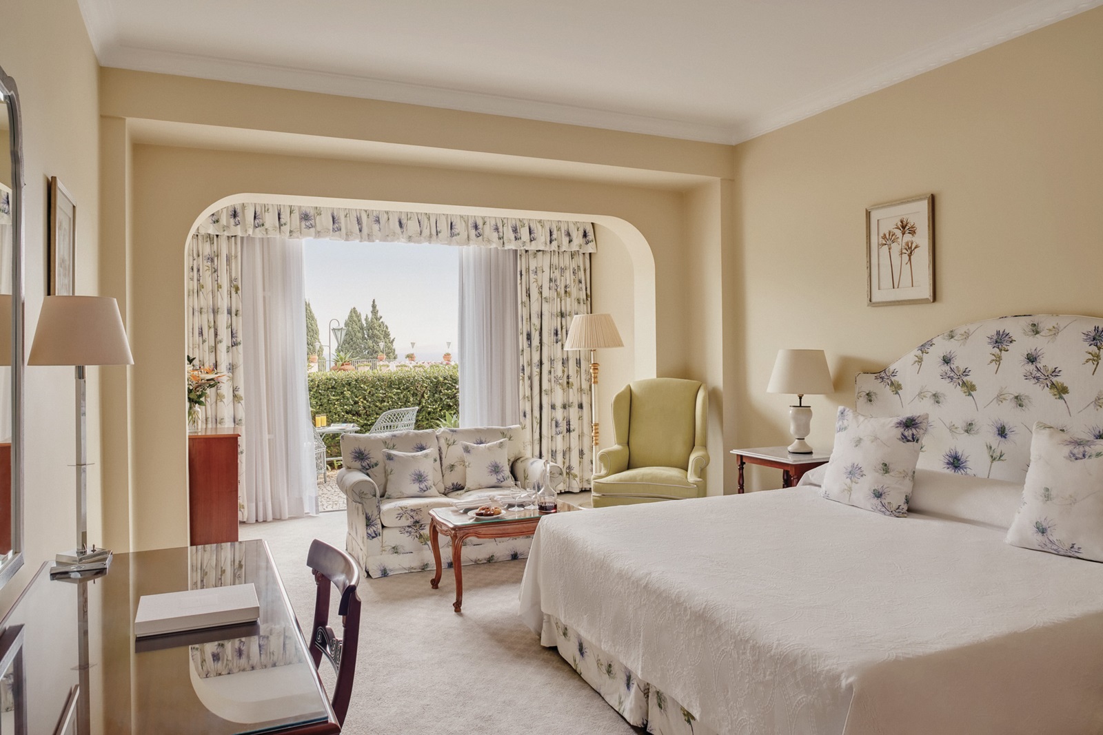 superior suites (43 m²) met ruimere badkamer (bad en aparte douche), ruime aparte zithoek en balkon met tuinzicht of zeezicht