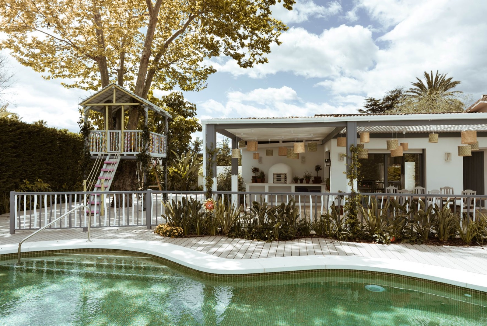 splinternieuw en trendy adults-only (18+) zwembad 'La Concha' in Polynesische stijl met dagbedden en Tiki Bar