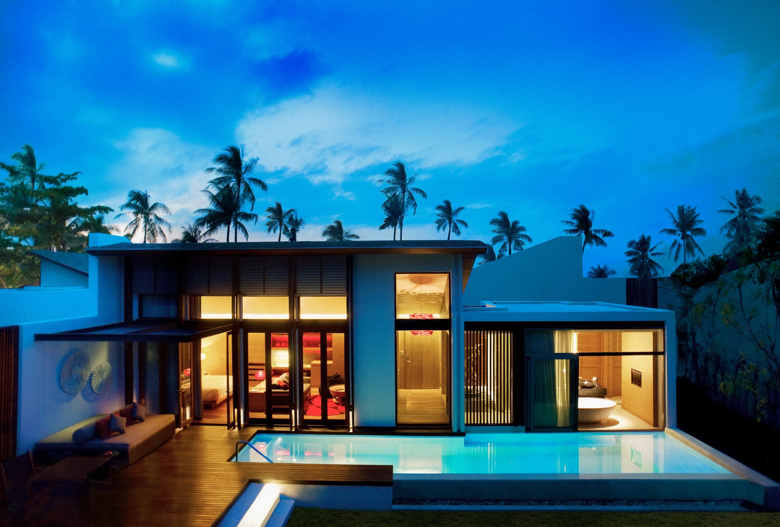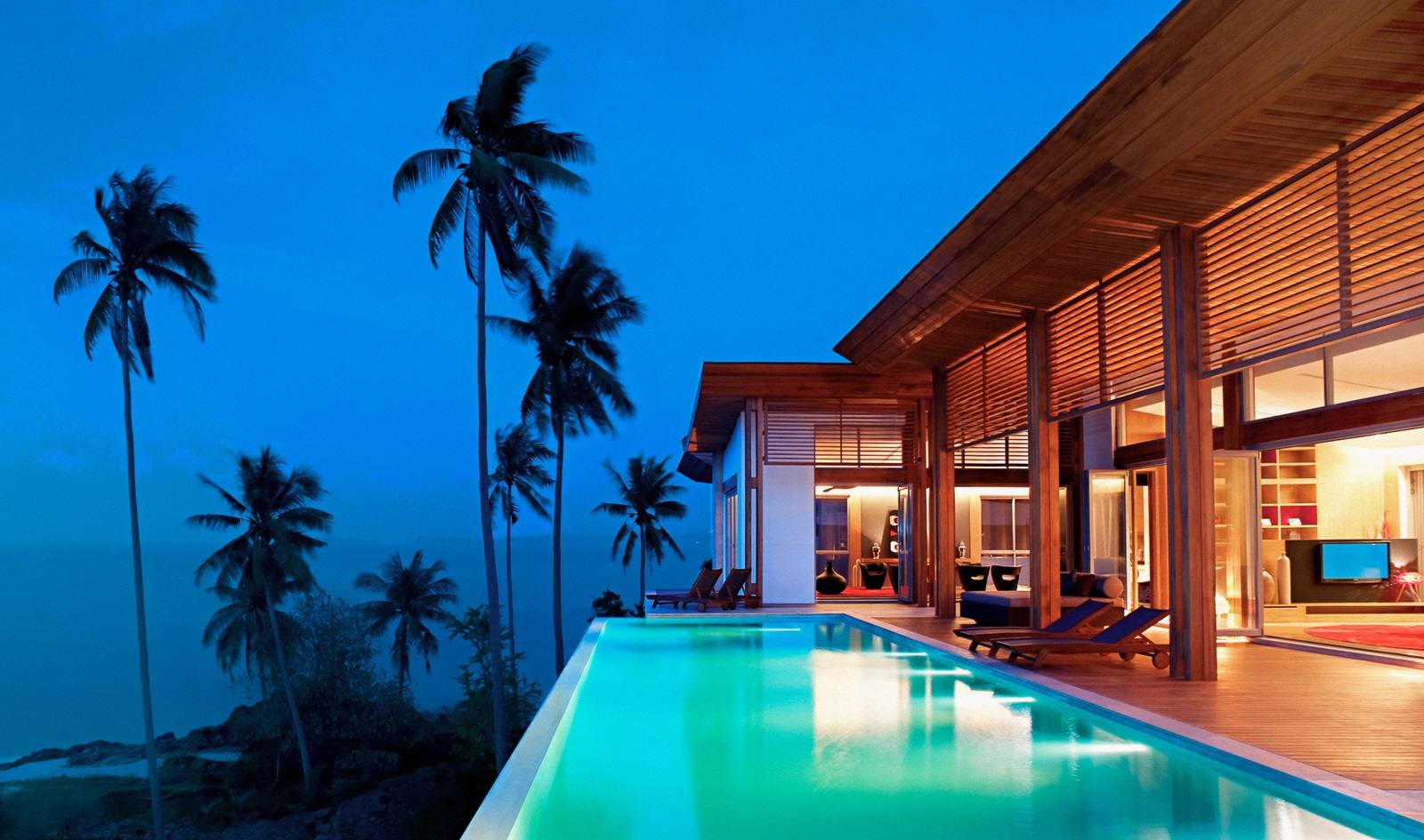 Elk van de 74 luxe Koh Samui villa's heeft een privé patio en zwembad, een adembenemend uitzicht op zee en het eiland, op maat gemaakte meubels, state-of-the-art technologie en ruime badkamers.
