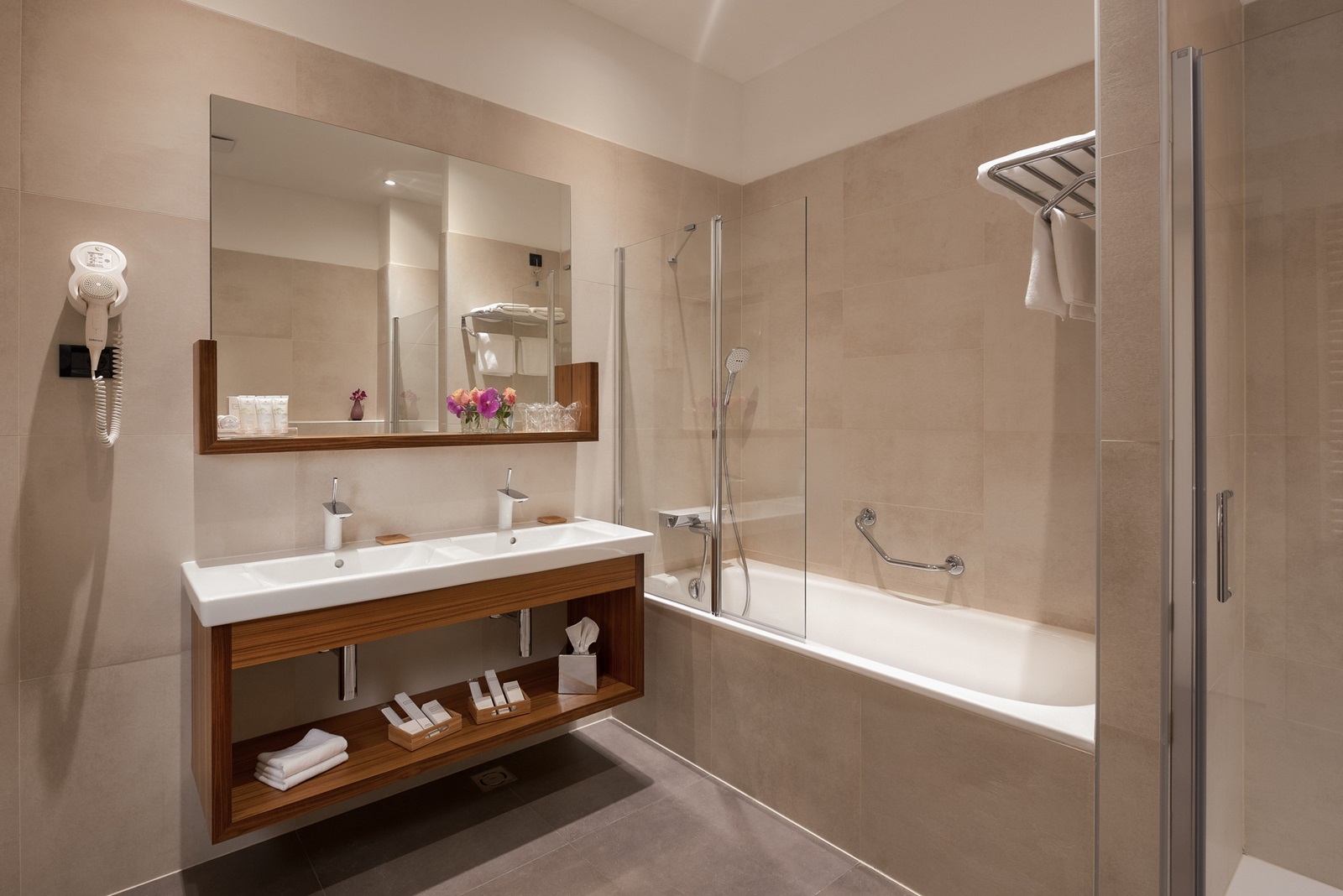 alle kamers beschikken over badkamer met bad of douche, haardroger, airconditioning, flatscreen-tv, wifi, koffie- en theefaciliteiten, kluisje en minibar (€)