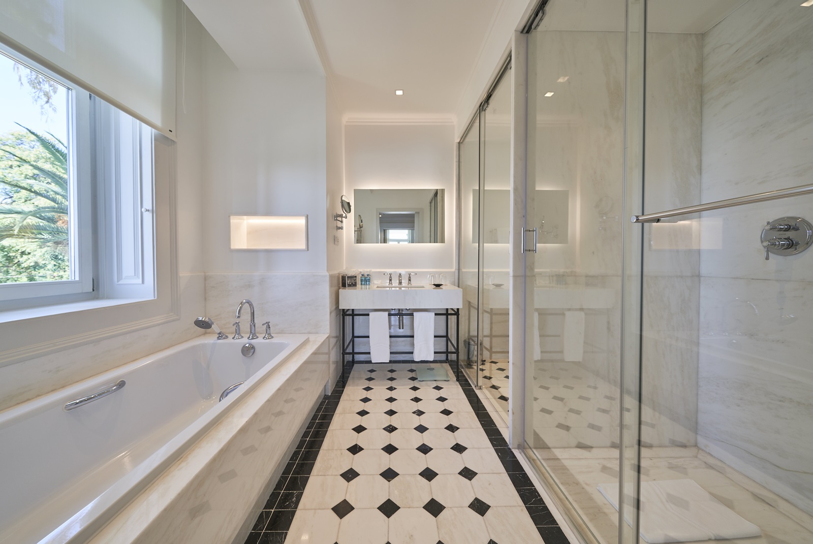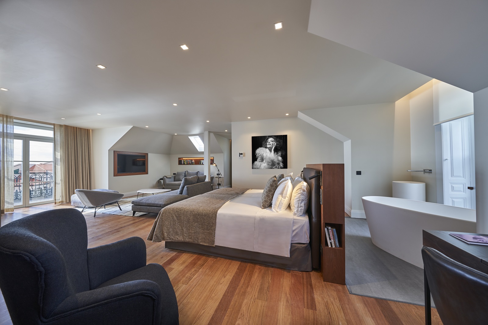 alle riante suites beschikken over een prachtige moderne badkamer (bad en aparte douche, Bvlgari amenities, haardroger), dressing, wifi (gratis), telefoon, flatscreen tv, minibar (gratis water en softdrinks), safe, Nespresso machine, combinatie parket en vasttapijt, aparte slaapkamer en aparte living, airconditioning en balkon of terras