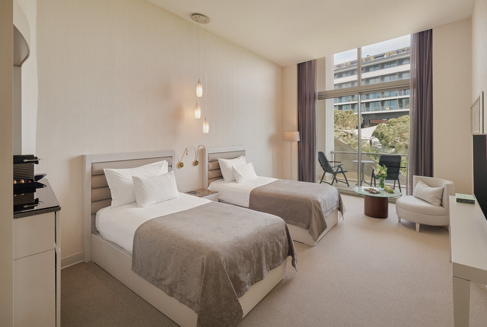 terrace familiesuites (100 m²) met 2 slaapkamers, 2 badkamers, 2 balkons (waarvan één met bubbelbad) en landzicht