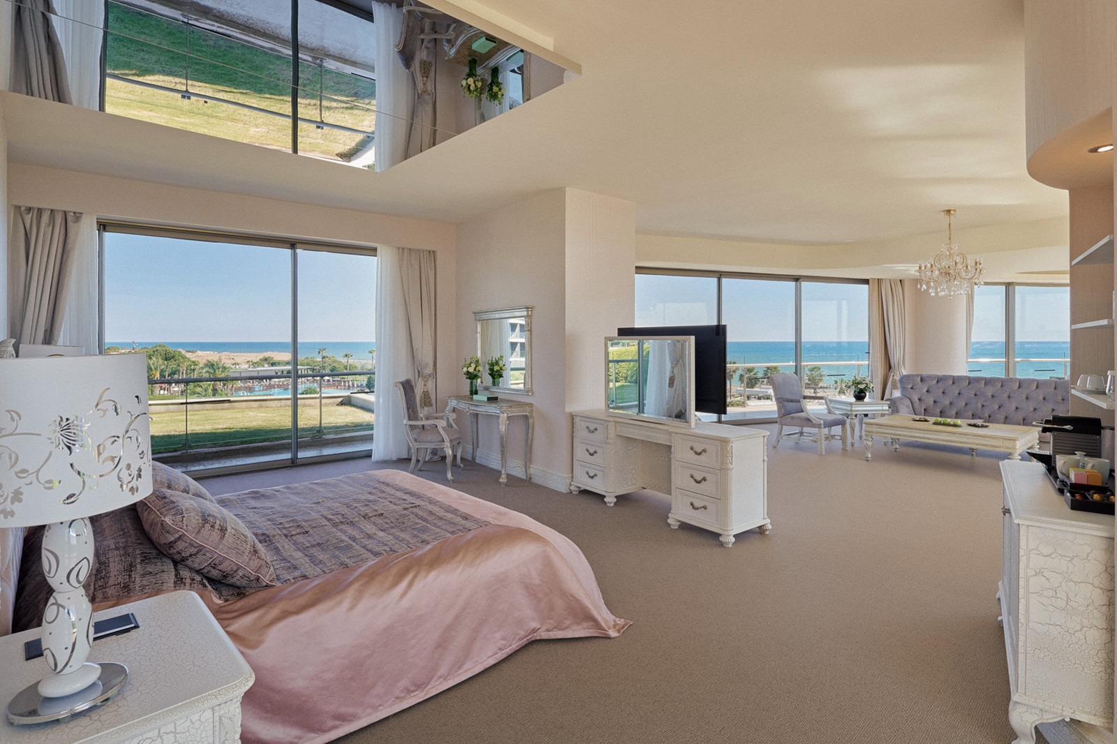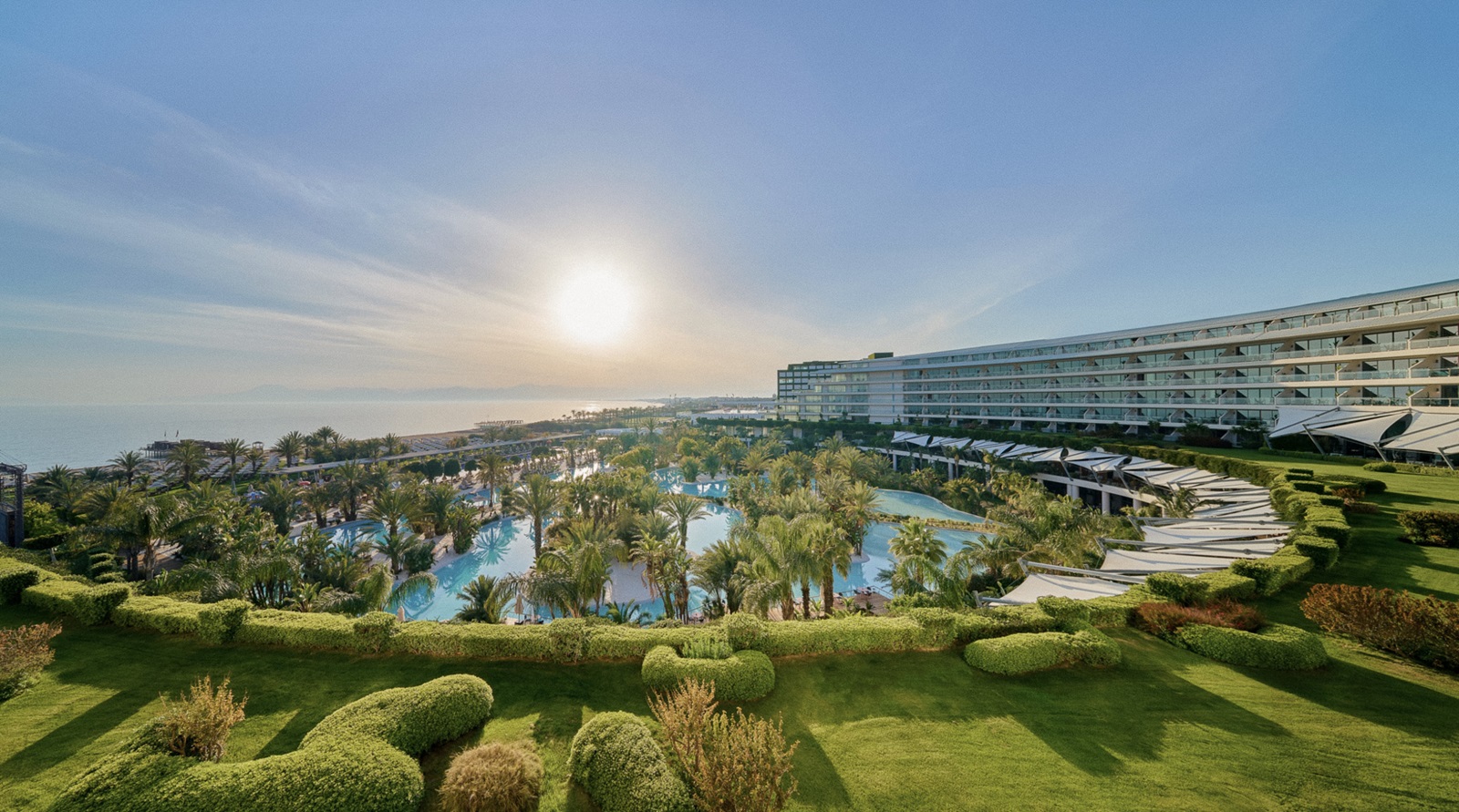 In dit schitterende hotel aan de Turkse Rivièra draait alles om zorgeloos genieten. Alle kamers van dit luxueuze resort zijn ruime suites die uitkijken op de Middellandse Zee of op de omliggende golfterreinen. Met een uitgebreid wellnesscenter een miniclub en een professionele golfbaan beleven groot en klein een actieve en bijzonder gevarieerde vakantie. En krijgt u trek, dan kunt u all inclusive aan een van de vele bars nippen van een drankje of u de klok rond laten bedienen in de verschillende à-la-carterestaurants.